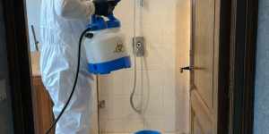 Désinfection en action dans la salle de bain suite a un suicide